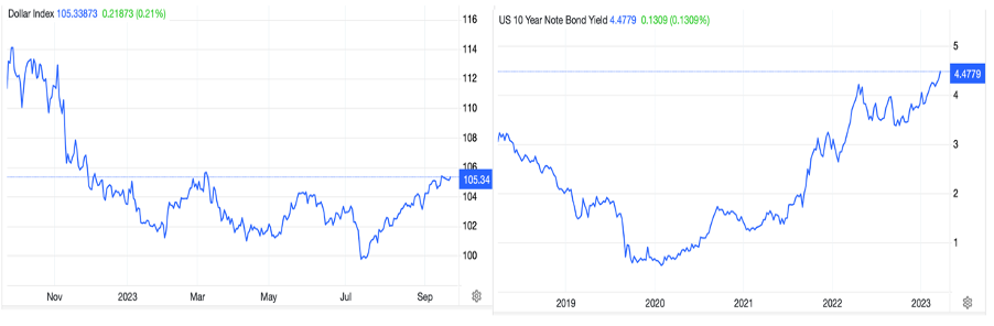 So far, hedge funds have believed that high interest rates and bond yields are bad for the gold price, and that is what has driven the relationship between the dollar and gold. More likely, we are going through a transition to fear of the economic and monetary outlook for fiat currencies.