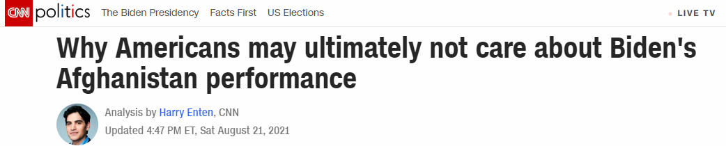 I knew Afghanistan was gut punch for the Democrats the second that CNN published “analysis” that the blunder, for some reason, wouldn’t matter to the American voter.