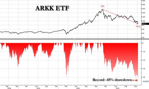 The market disagreed. By January 2022, the ETF had posted a record drawdown of 45% at the time.