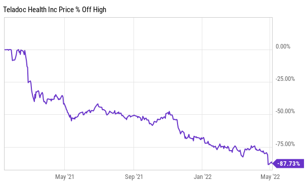 One of Wood’s top holdings in Teladoc (TDOC) was slammed on earnings and closed near $30 per share after all time highs less than 18 months earlier over $300 per share.
