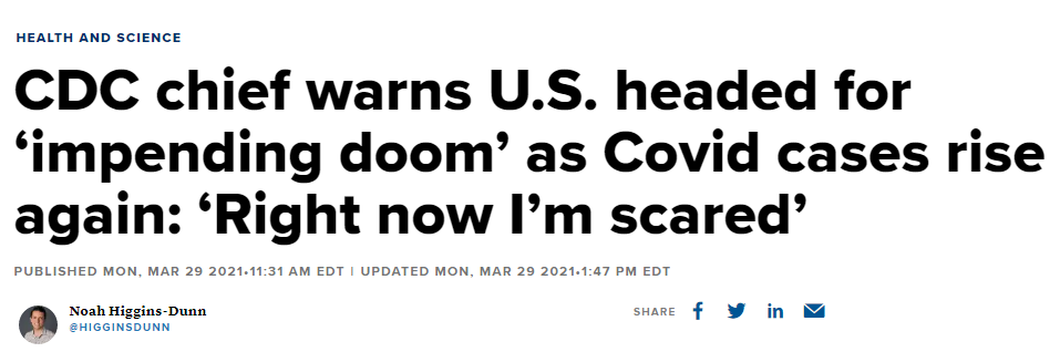 Let us also not forget that after the vaccines were finally being distributed, after waiting about 12 months for them and hearing about how miraculous they would be non-stop, that it was only then that CDC Director Rochelle Walensky said on national television that she felt an “impending doom” about the virus.