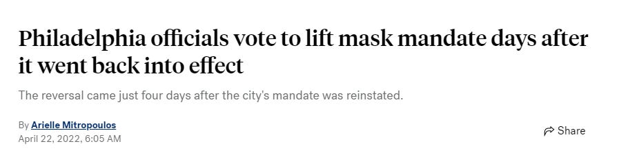 And as 2022 began to unfold, that’s exactly what happened. In fact, in my hometown of Philadelphia, it happened almost immediately when the city tried - for a second time - to impose mask mandates and business owners banded together, sued the city, and then basically told those in charge to go fuck themselves.