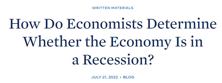 The White House Council of Economic Advisers wrote in a blog called “How Do Economists Determine Whether the Economy Is in a Recession?” last week: