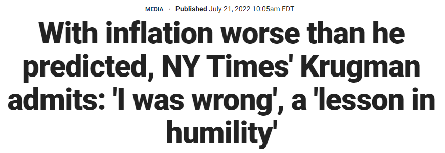 It’s also the same ilk whose leader, Nobel Prize Winner Paul Krugman, issued a big fat mea culpa this week for not seeming to understand dick about where inflation comes from: