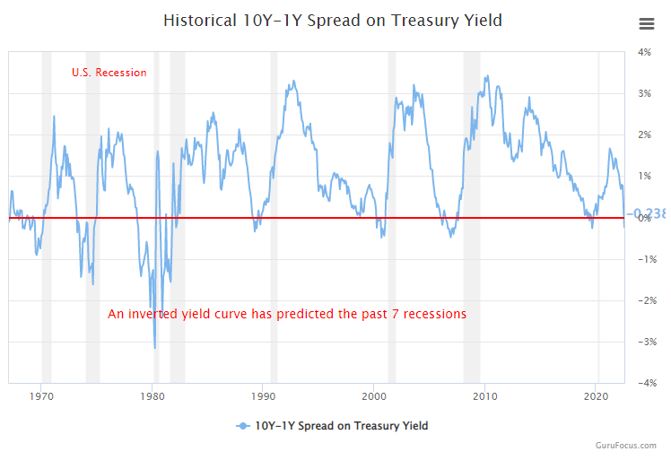(Update 7/28/2022: Q2 U.S. GDP has fallen -0.9%, marking the second straight quarterly decline in GDP. This is the technical definition of a recession, no matter what the White House blathers on about.)