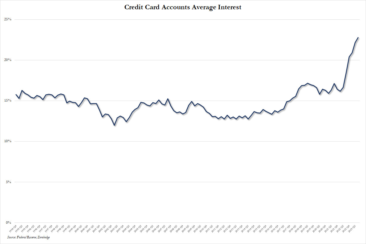 Zero Hedge also noted that personal savings is near all time lows with credit card interest rates at record highs: