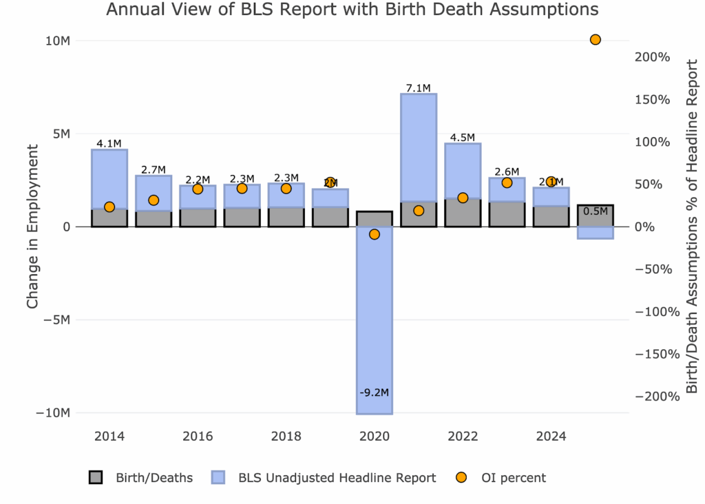 For the year, the birth death assumption is a positive 1.15M against negative actuals of -633k. This means all positive growth YTD is directly tied to the birth/death assumptions.