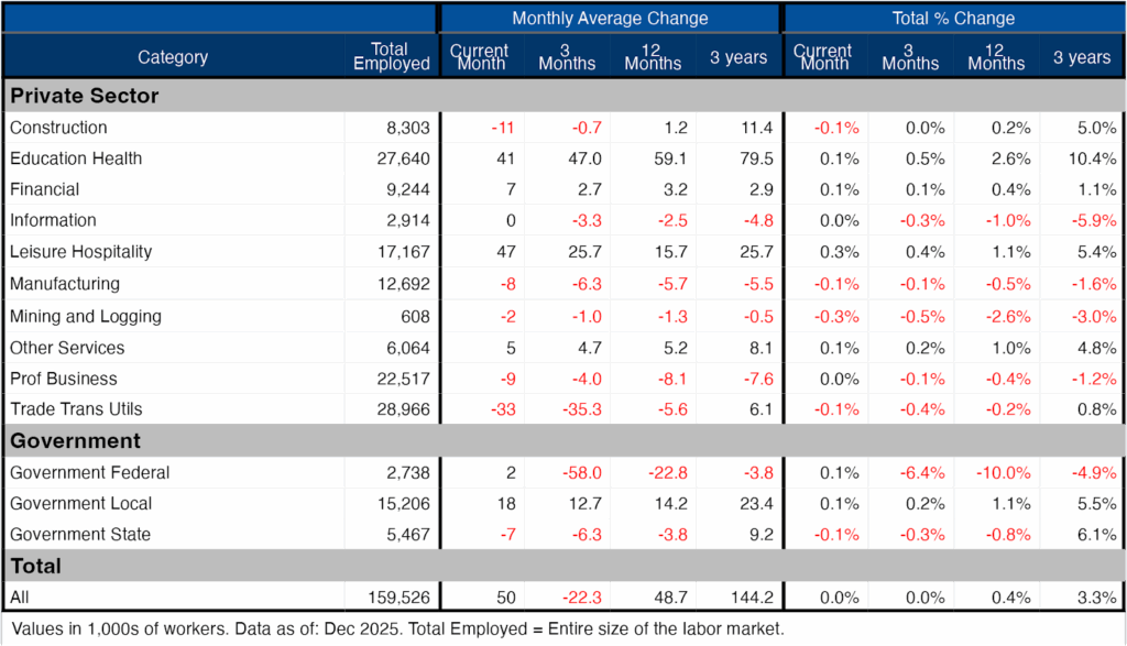 The jobs report showed a very modest increase of 50k jobs in December This followed an estimated loss of 173k jobs in October and only 56k jobs added in November. The Household Survey report was actually much higher at 232k jobs for the month of December.