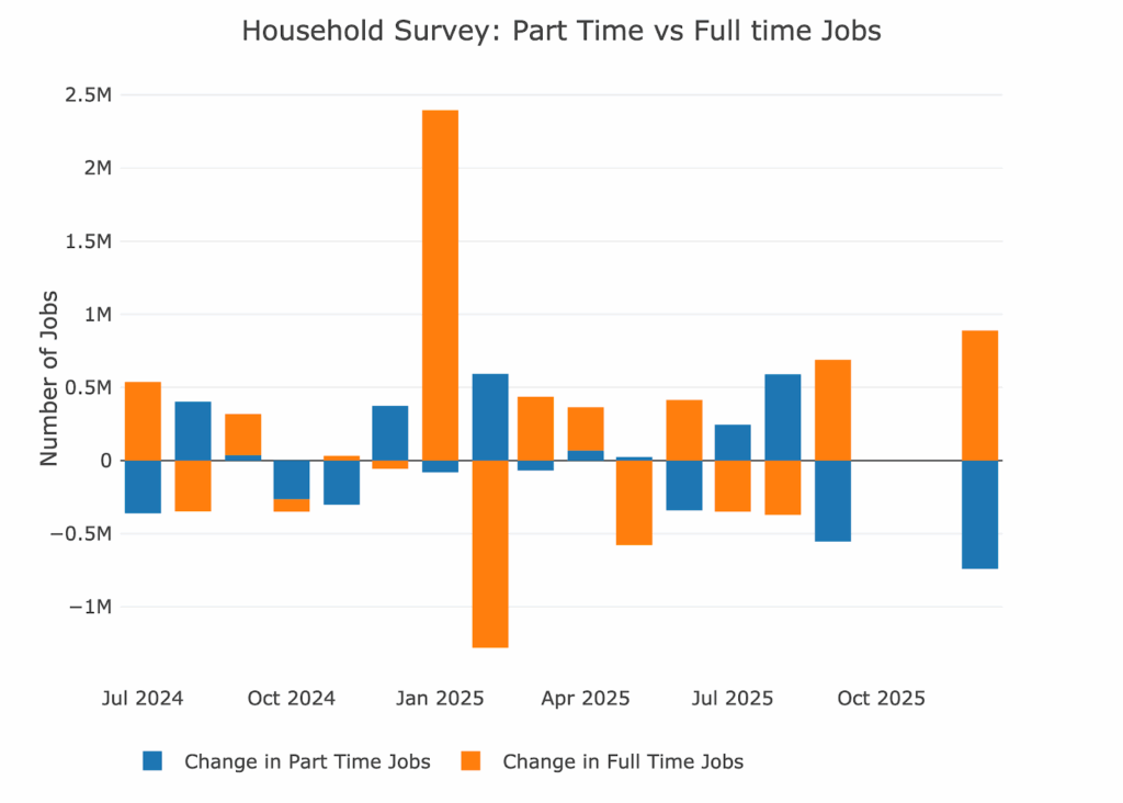 Another level of detail in the Household report shows full-time vs part-time job holders. This month shows that full-time jobs were gained while part-time were lost