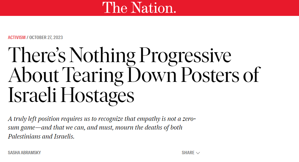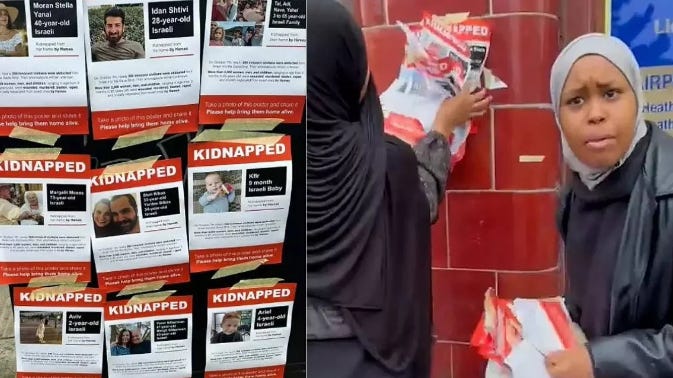 Next, think about the mindset of somebody living in the United States and tearing down photographs of kidnapped Israelis that have been plastered in public.