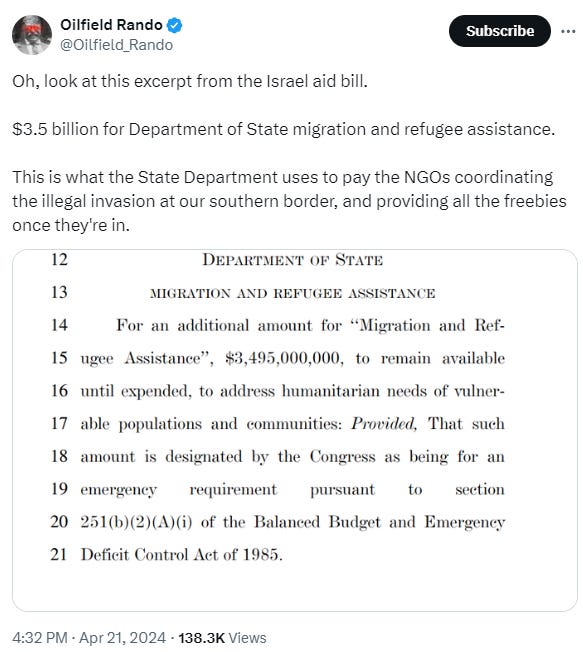 As if this situation wasn’t insulting enough, over the weekend the United States House of Representatives approved more foreign aid, totaling nearly $100 billion and including $60 billion to Ukraine, without similarly funding to secure our own nation’s southern border.
