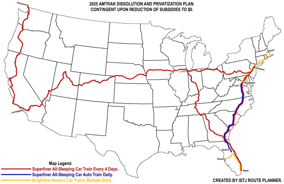 Eliminating subsidies would not spell the end for passenger trains. Brightline Florida—a privately-owned train service—began operations in 2023. Under a zero-subsidy model, it might consider buying Amtrak. For Brightline, this move could reduce overhead and enhance efficiency. For example, it could sell certain routes to Rocky Mountaineer or Union Pacific. There is also the possibility of auctioning off surplus assets to the public. In the end, Brightline would only preserve the most sustainable routes.