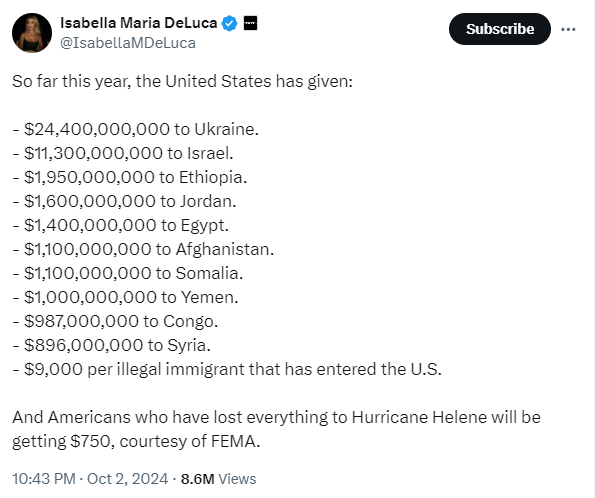 I’ve also spent the last four years watching the United States dole out close to $50 billion in foreign aid, mainly to Ukraine to help it press on with a war that realistically it has little chance of winning, while shaking down waitstaff, Uber drivers and anybody using Venmo for purposes of more than $600 for tax receipts.
