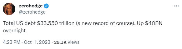 Right off the bat, let's examine monetary policy. Sure, rates have been at 5% before, but they haven't been there with $33 trillion in debt outstanding.