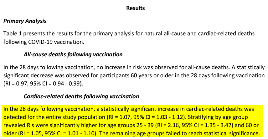 4. If you even bothered to fully read the link you’d see that whoever authored it warns the reader that they used the death certificate code of ACME I3-152 which is a catch all code for “other forms of heart disease”, not a very precise measure by any means. That’s why the anonymous author states “the underlying cause of death may not be cardiac related.”