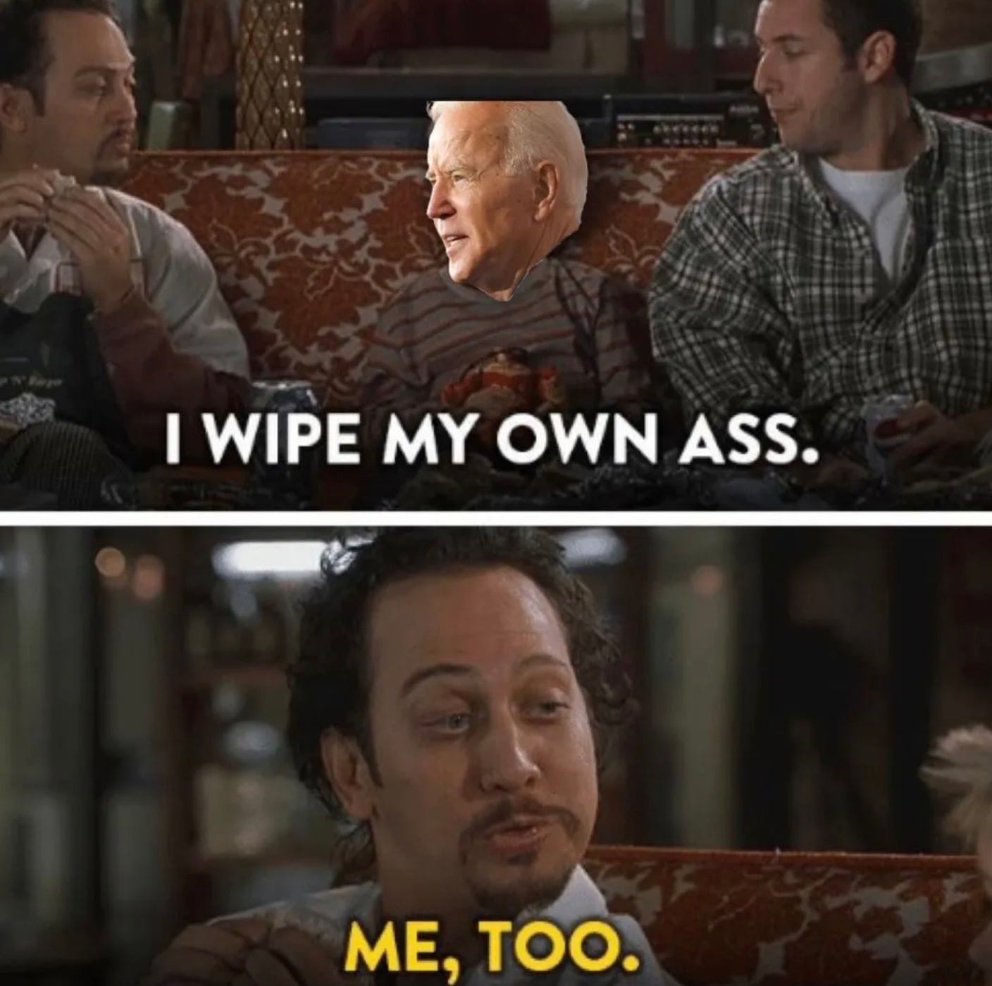 And if you weren’t in stitches after his first set, Biden returned later in the evening for an encore at the much heralded ‘Big Boy’ press conference he had been scheduled to give in order to show the world, to quote the movie Big Daddy, that he could “wipe his own ass”.