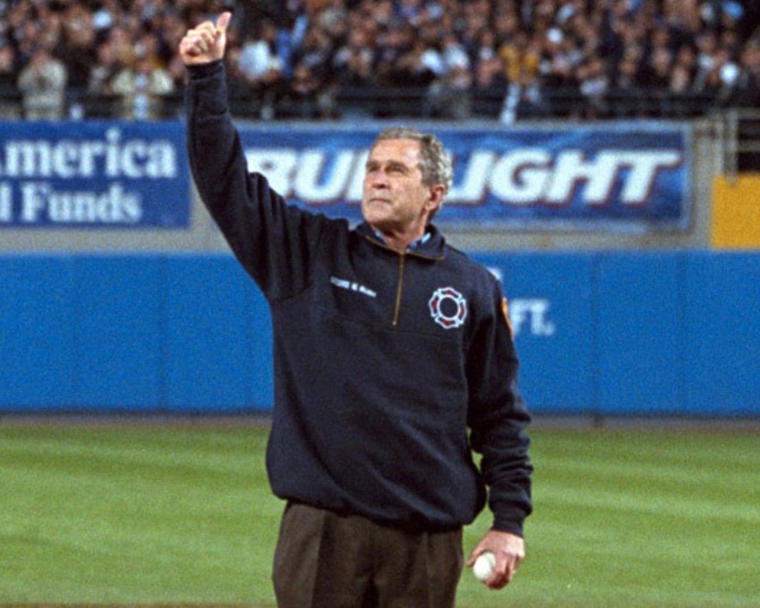 This would have been like introducing President George W. Bush throwing out the first pitch at Yankee Stadium after 9/11 as “President Osama Bin Laden”.